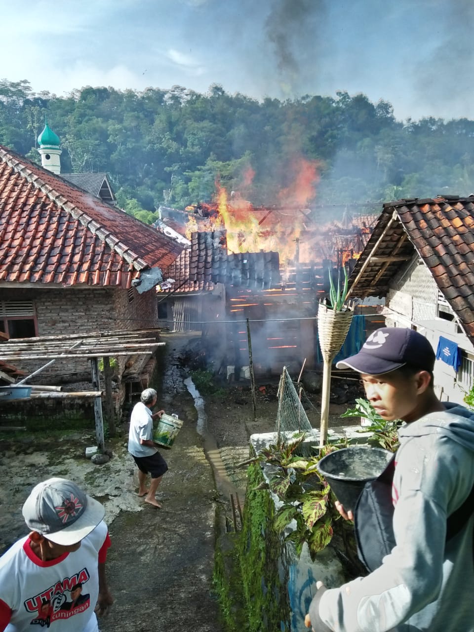 Rumah milik nenek Arinah (70) ini diduga terbakar karena api tungku kayu bakar yang lupa ia padamkan kemudian ditinggal ke kebun, menyebabkan api merambat ke dingding kayu juga ke atap rumah.